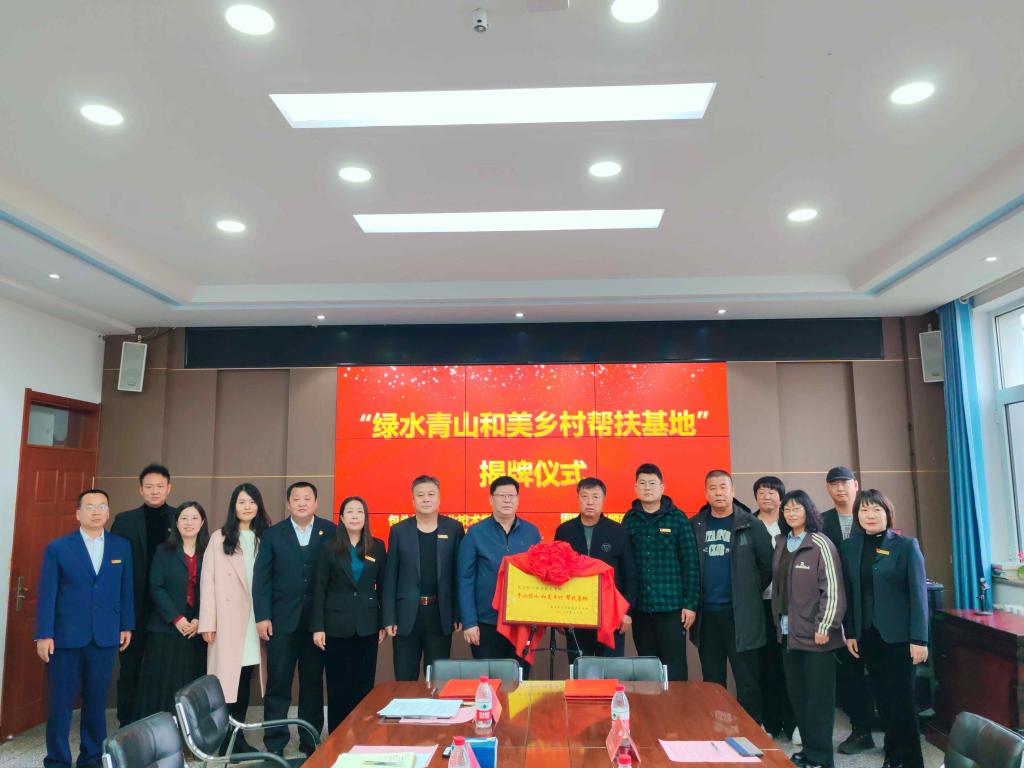 胡明处长与贾玲龙主任共同为《绿水青山 和美乡村帮扶基地》牌匾揭牌。