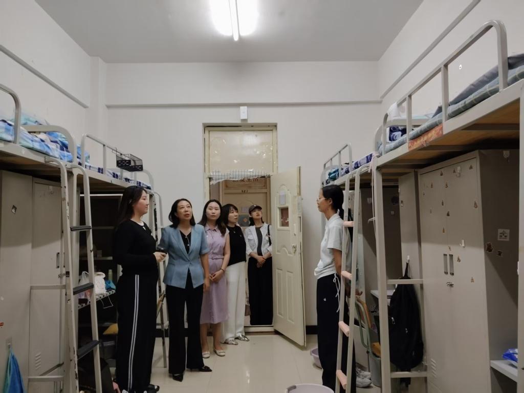 2025年8月30日晚21:00,艺术设计系党总支书记李强、系主任曹永霞、副书记王文华、学生科科长周易、副科长禹晨以及全体2025级新生辅导员一起走访新生宿舍。