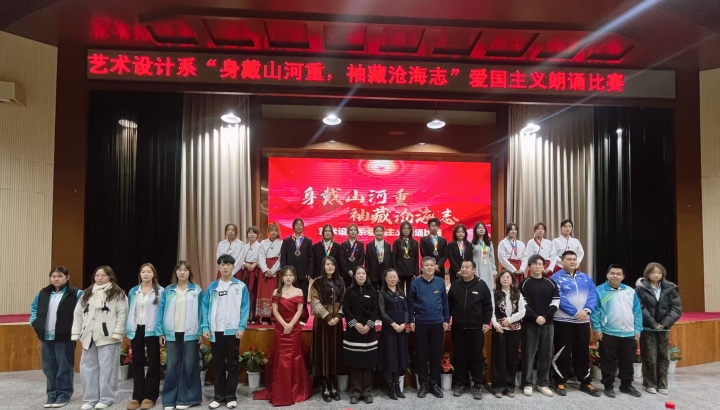为深切缅怀在抗日战争和世界反法西斯战争中英勇牺牲的英烈,弘扬伟大抗战精神,2025年11月21日,艺术设计系在国际报告厅开展“身戴山河重 袖藏沧海志”为主题的爱国主义诗歌朗诵比赛。宣传统战部副部长寇巍;艺术设计系党总支书记李强、主任曹永霞、党总支副书记王文华、副主任张怡、教学科科长张红霞、学生科科长周易、团总支书记禹晨受邀担任本次大赛嘉宾与评委,现场师生共同见证这场语言之美的文化盛宴。